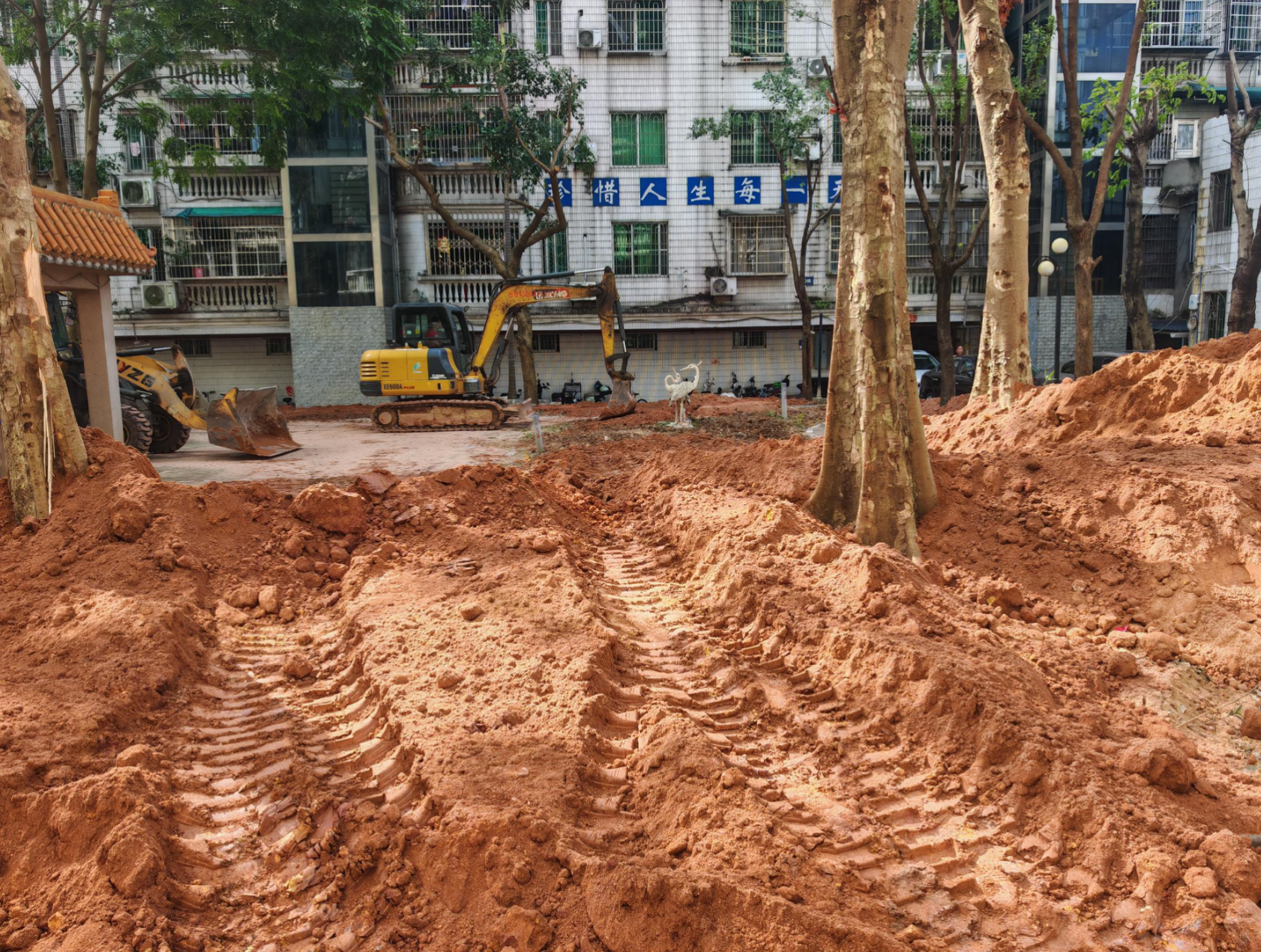 为确保绿化环境焕新效果扎实落地,工程团队制定了一套精细化实施措施。在土壤改良环节,针对小区部分区域土壤板结、肥力不足的问题,施工人员先使用深耕机械对土壤进行深度翻松,破除板结层,随后按比例混合熟耕土和通用种植土,不仅提升了土壤透气性,还为后续植被生长提供充足养分。